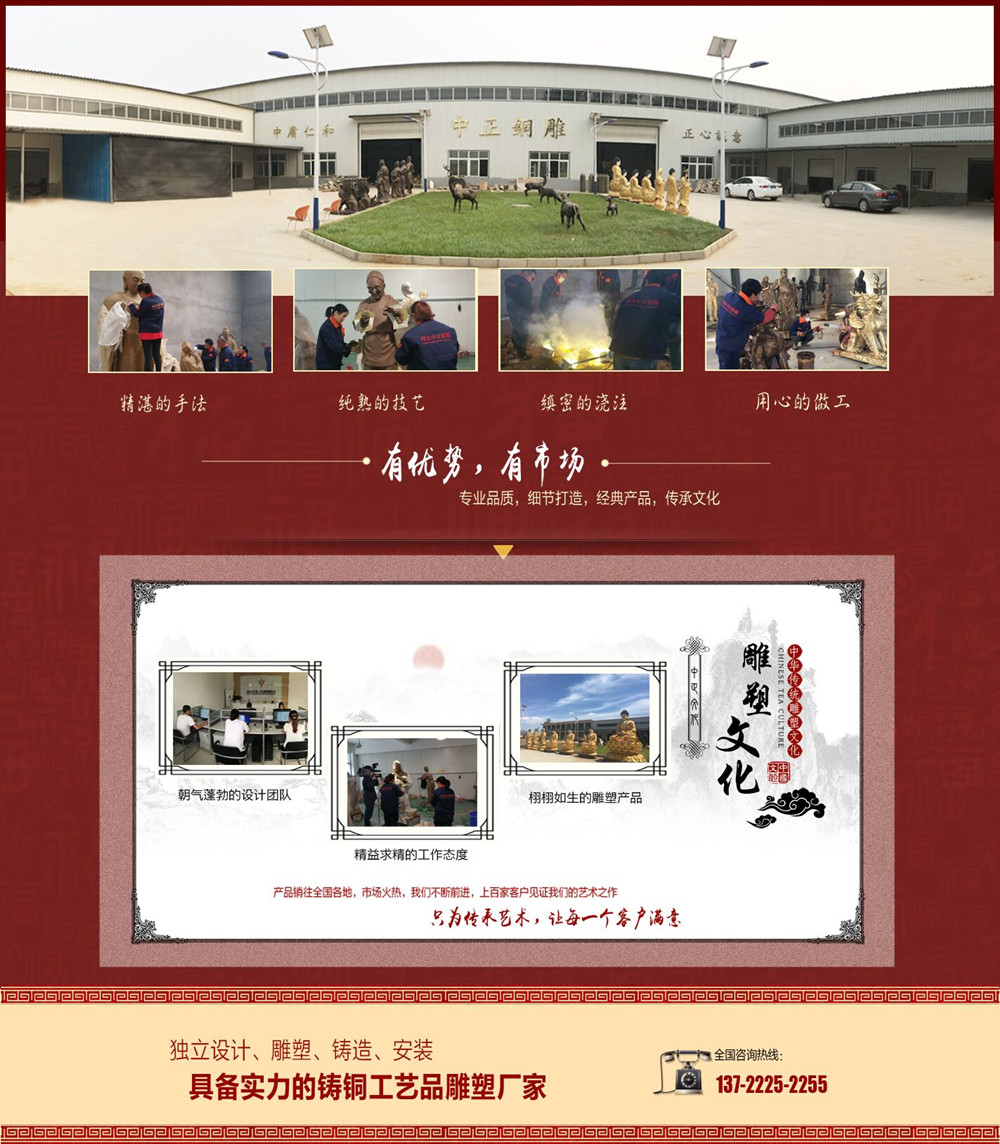 網站公告:響應國家號召,打造綠色鑄銅雕塑環境!是專業的銅雕,人物銅雕,動物銅雕,城市銅雕,銅雕廠家。公司宗旨:市場永遠在變,誠信永遠不變。